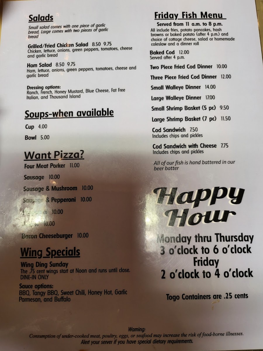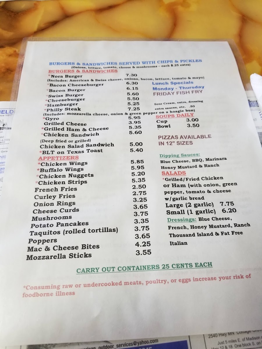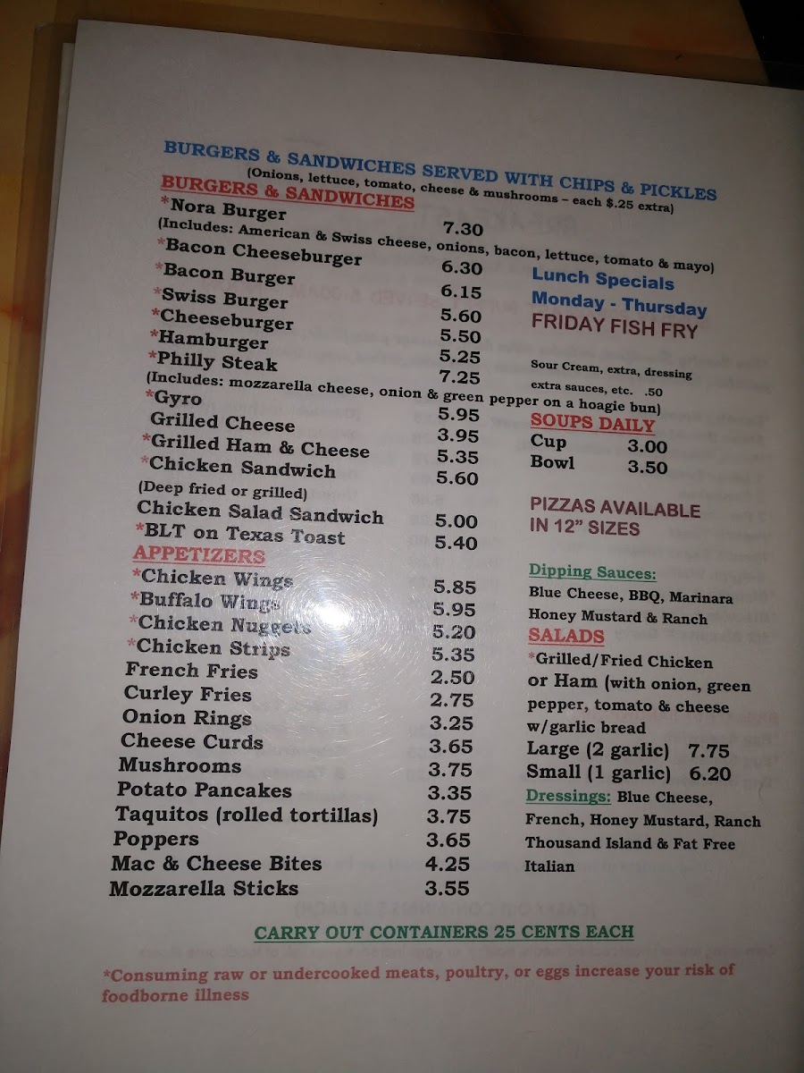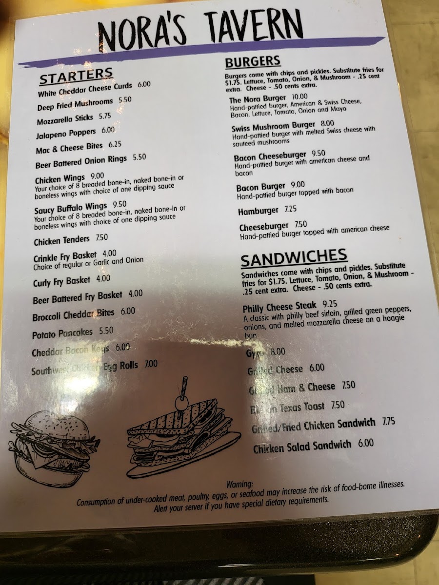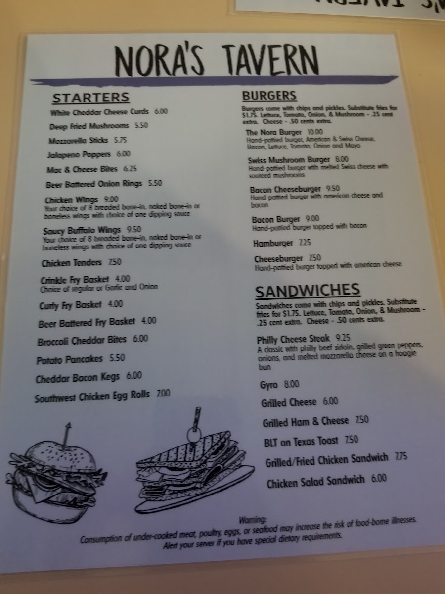 Nora's Two Menu